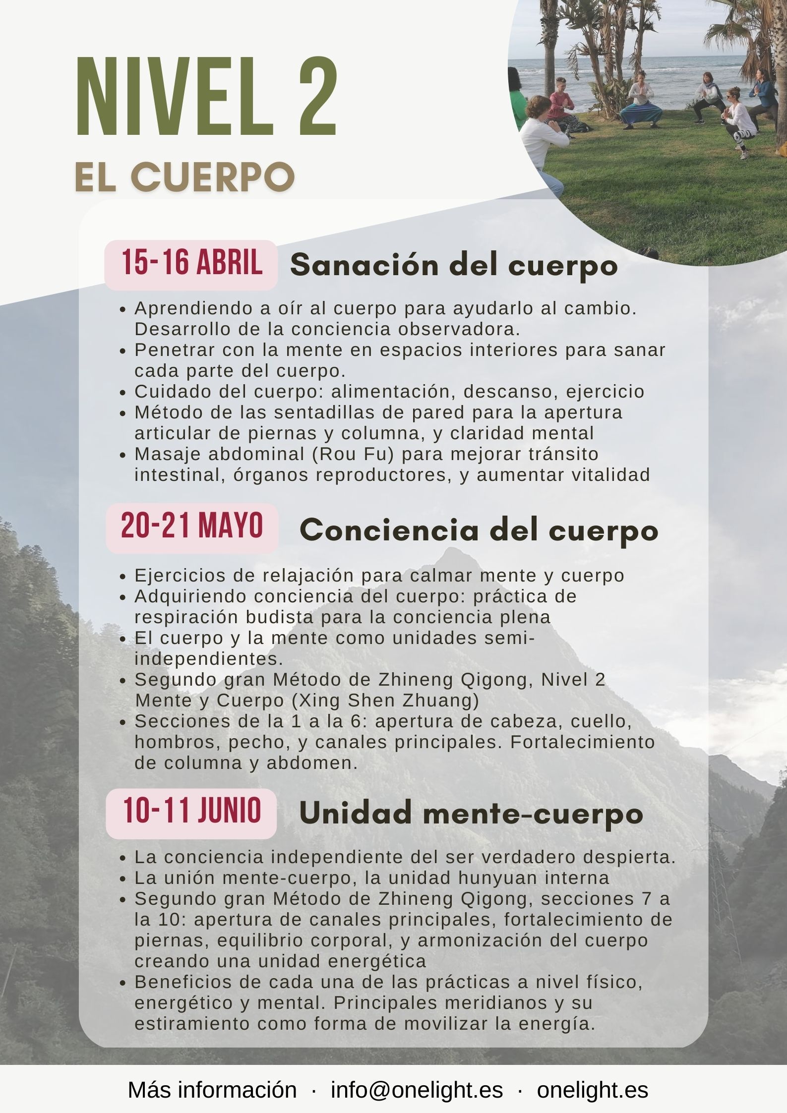 Zhineng Qigong es una disciplina que integra la medicina china tradicional, el trabajo energético taoísta y la meditación budista. Además lo complementamos con el desarrollo espiritual del yoga tradicional, pudiendo así ofrecer un camino completo de sanación integral y crecimiento personal.