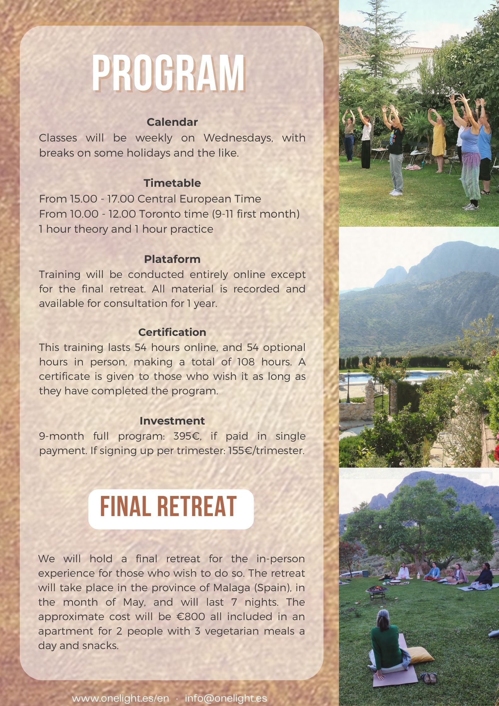 One Light  ·  School of Zhineng Qigong and Traditional Yoga  ·  In Malaga and Online